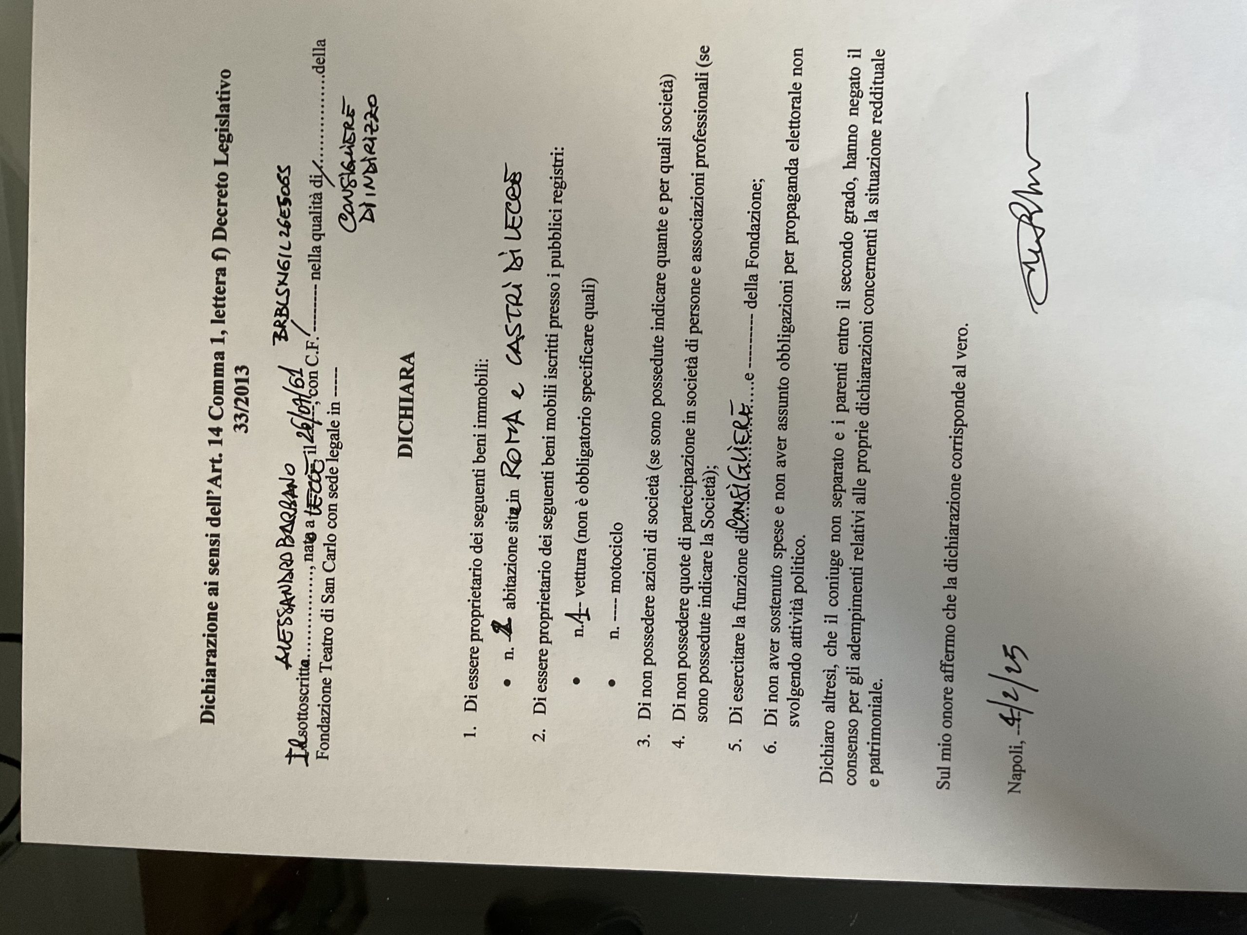 Dichiarazione ai sensi dell’Art. 14 Decreto Legislativo 33/2013 comprensiva della dichiarazione di negato consenso del coniuge